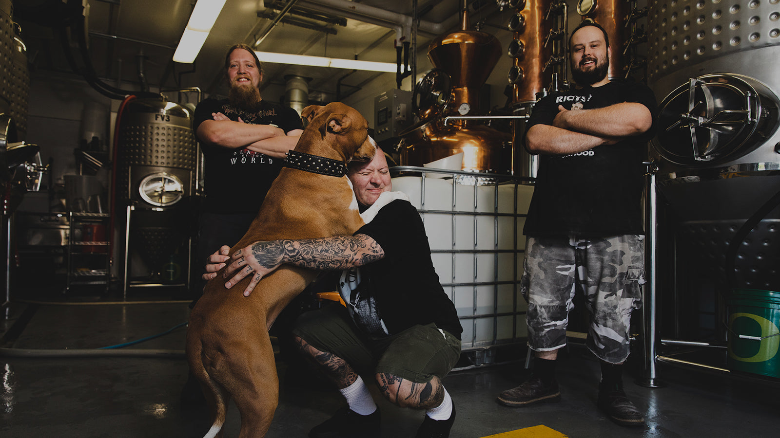 Ben’s rescued pit bull Mr. Pickles is the distillery mascot and bouncer. Look closely and you will see him on the Blood x Sweat x Tears™ bottle.