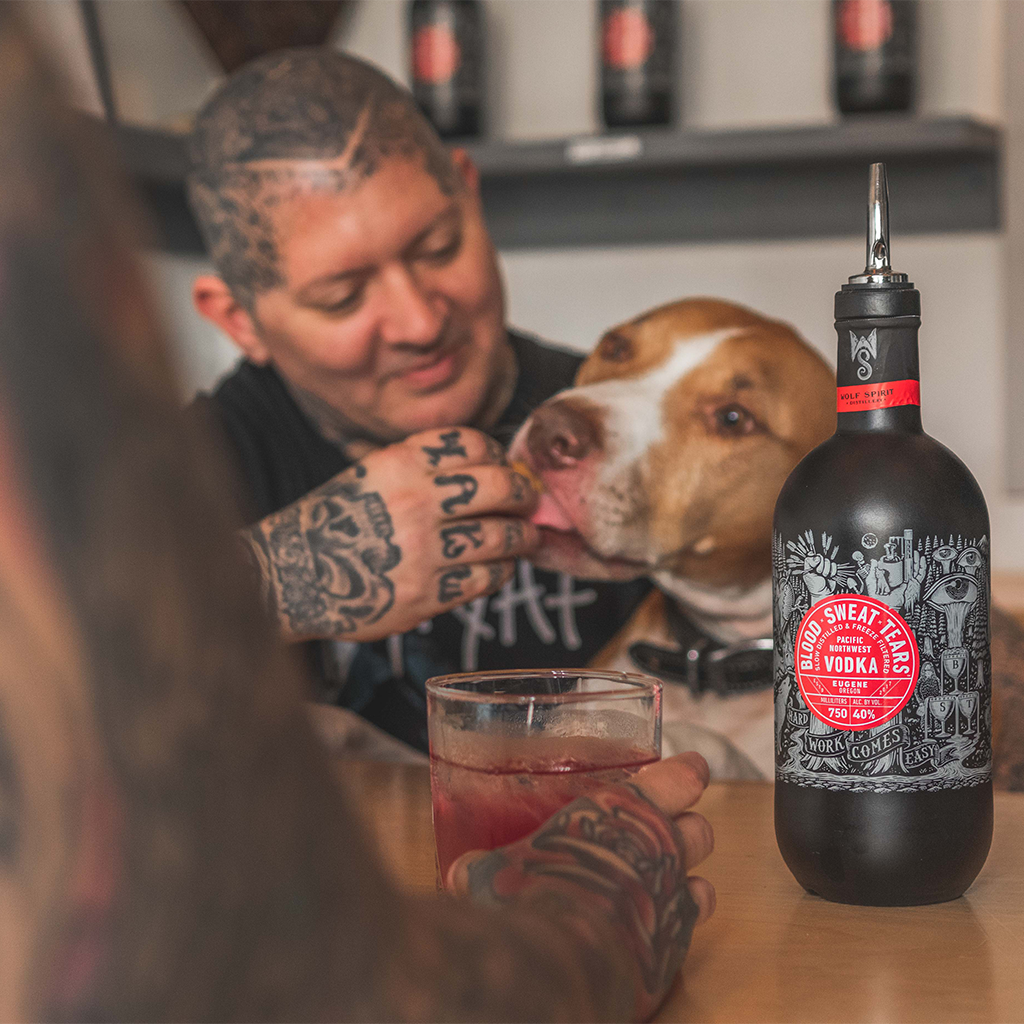 Trial and error. That's how we got here. From our humble strip-mall laundromat turned craft distillery, our master distiller Ben Green and his faithful dog Mr. Pickles developed Blood x Sweat x Tears Vodka through countless test batches and experimentation. The final product is a totally unique vodka that most love, and some hate. And we're fine with that. Crafted from grain to bottle in Eugene, Oregon, this vodka is best enjoyed however you like. And we think it tastes especially good when you're celebrating a hard day's work amongst good company.